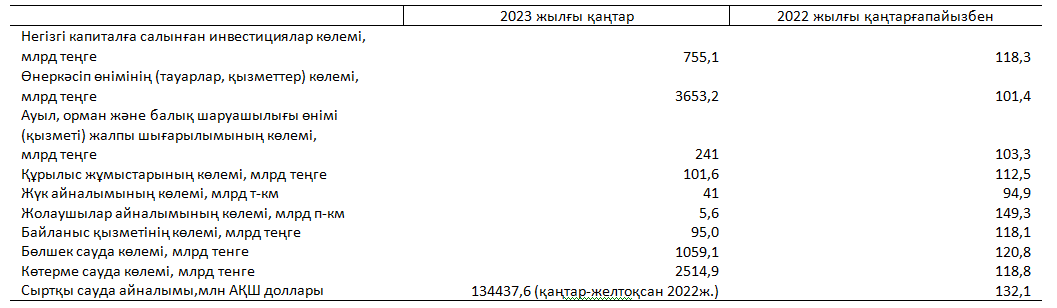 Ұлттық статистика бюросының мәліметінше, қысқа мерзімді экономикалық индикатор 2023 жылғы қаңтарда былтырғы сәйкес мерзімге қарағанда 105% құрады. Қысқа мерзімді экономикалық индикаторды есептеу жеделдікті қамтамасыз ету мақсатында жүзеге асырылады және ЖІӨ-ің 60%-ан астамын құрайтын ауыл шаруашылығы, өнеркәсіп, құрылыс, сауда, көлік және байланыс сияқты негізгі салалар бойынша шығарылым индекстерінің өзгеруіне негізделеді.